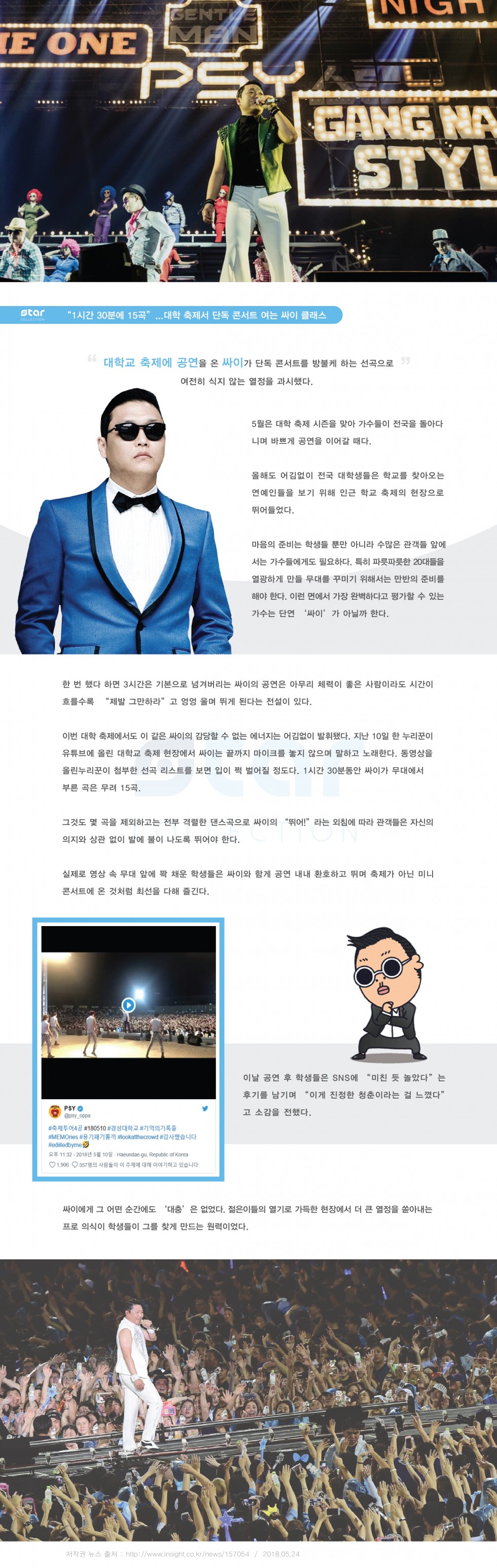 “1시간 30분에 15곡”...대학 축제서 단독 콘서트 여는 싸이 클래스