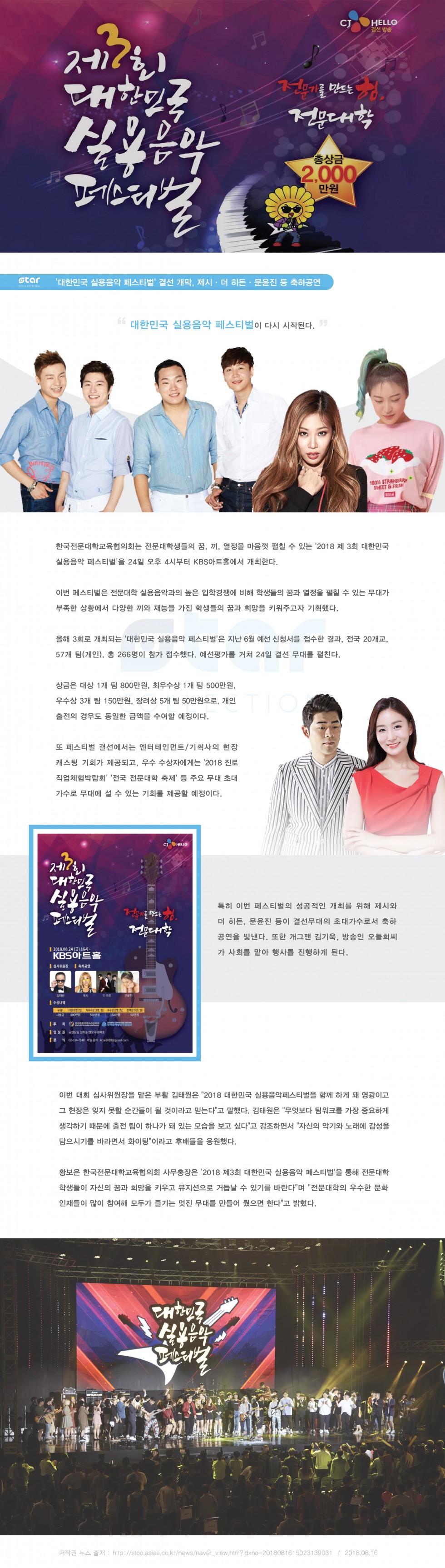 '대한민국 실용음악 페스티벌' 결선 개막, 제시·더 히든·문윤진 등 축하공연