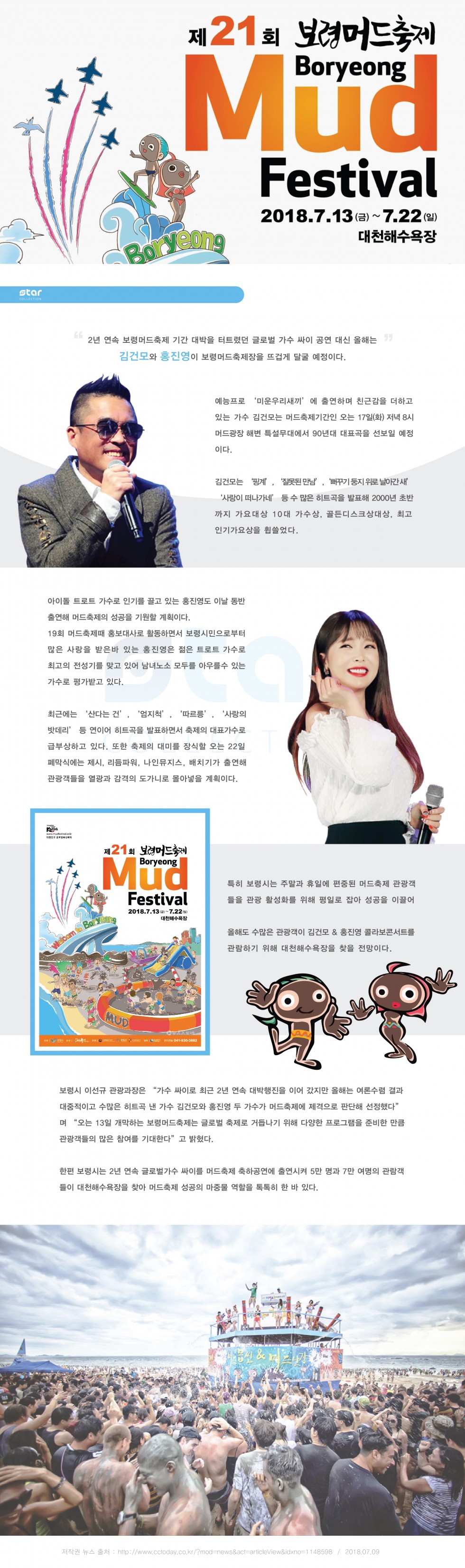 가수 김건모·홍진영, 보령머드축제 흥행 이끈다